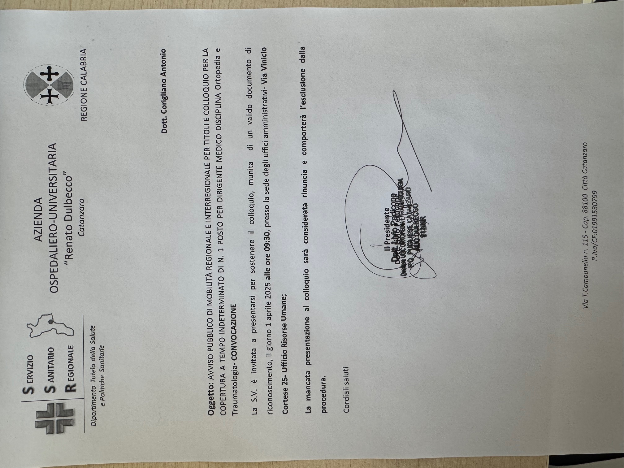 AVVISO PUBBLICO DI MOBILITÀ REGIONALE E INTERREGIONALE PER TITOLI E COLLOQUIO PER LA COPERTURA A TEMPO INDETERMINATO DI N. 1 POSTO PER DIRIGENTE MEDICO DISCIPLINA ORTOPEDIA E TRAUMATOLOGIA- CONVOCAZIONE