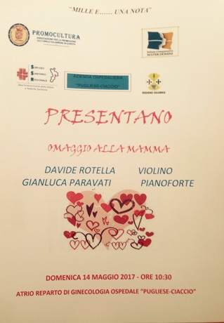 Domenica 14 maggio a partire dalle ore 10,30 presso il reparto di Ginecologia dell’Azienda Ospedaliera “Puglise Ciaccio” l’associazione Promocultura, diretta dal Professore Tommaso Rotella, in collaborazione con l’Istituto Comprensivo “Mater Domini”, nella persona del suo Dirigente Scolastico dott.ssa Loredana Cannistrà, darà vita ad un concerto dedicato alle mamme proprio in occasione della loro festa.