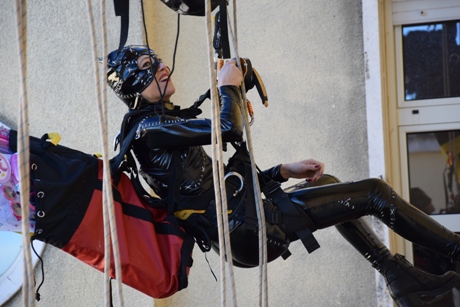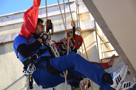 A calarsi dall’alto per la gioia dei più piccoli, il maestro artigiano Marcello De Paola, il geologo Luciano Carito, il geometra Enrico Pileggi e la restauratrice Concetta Villella, specializzati in Edilizia acrobatica e sportiva e debitamente ancorati con sistemi certificati.