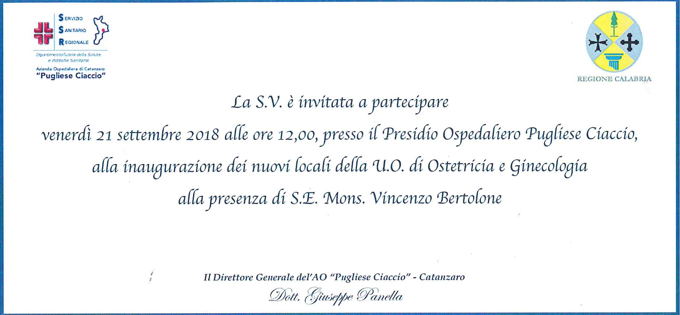Inaugurazione nuovi locali della U.O. di Ostetricia e ginecologia Invito rivolto a tutti i dipendenti dell'A.O.P.C.