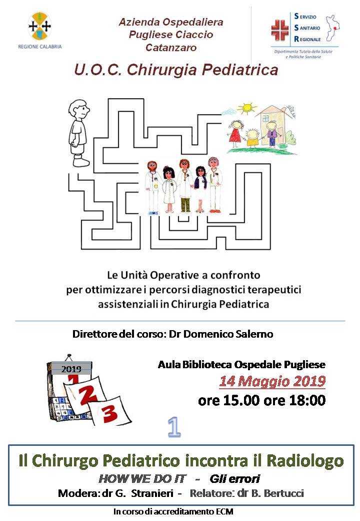 Il corso si terrà il prossimo 14 maggio dalle ore 15,00 alle ore 18,00 presso la Biblioteca dell'Azienda Ospedaliera "Pugliese-Ciaccio", Presidio "Pugliese".