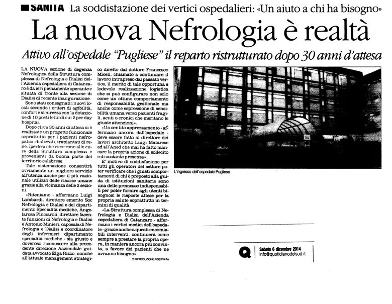 Il Quotidiano della Calabria - La nuova Nefrologia è realtà