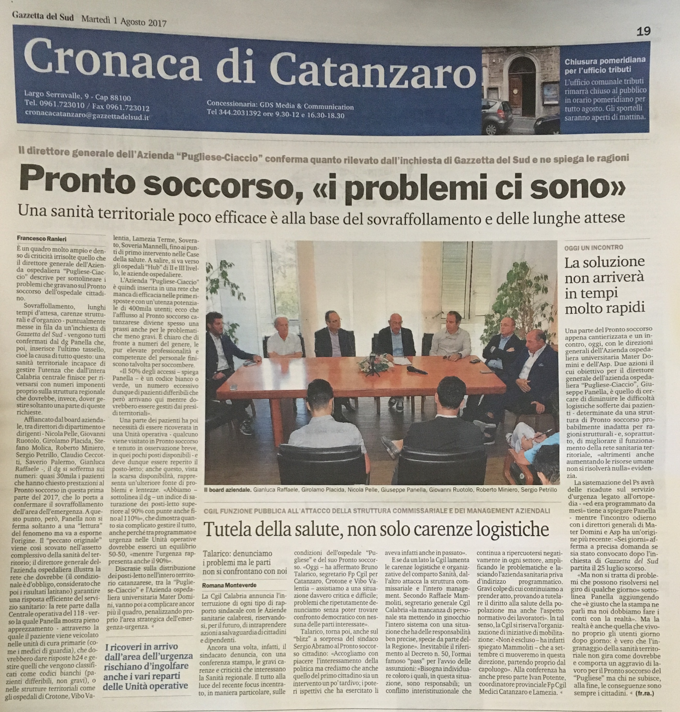 1 agosto 2017 - Gazzetta del sud - Pronto Soccorso, i problemi ci sono