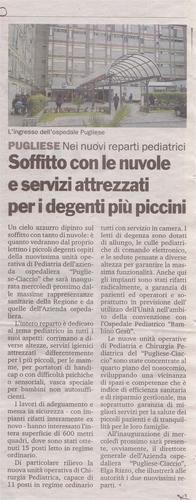 Soffitto con le nuvole e servizi attrezzati per i degenti più piccini - Gazzetta del Sud 15.07.2012