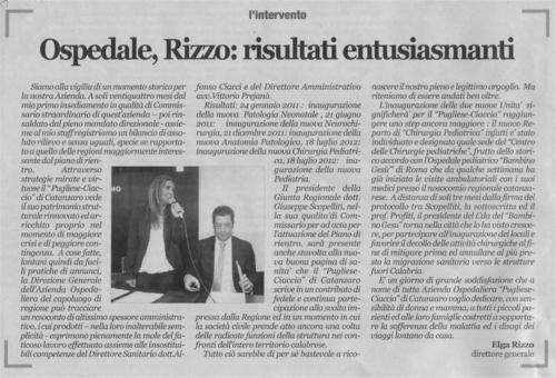 Ospedale, Rizzo: Risultati entusiasmanti - Calabria Ora 17.07.2012